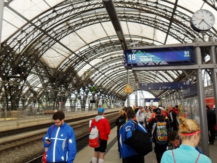 Dresden Hauptbahnhof: Die Läuferschar will nach Königstein