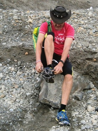 Laufen auf dem Gletscher mit den Dingern am Schuh ist Spaß!
