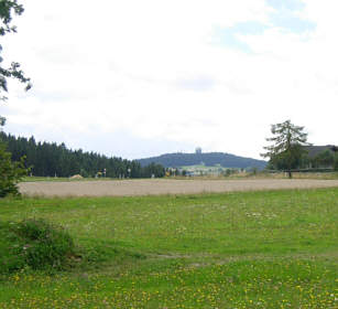 In der Ferne der Döbraberg. Der Döbraberg ist mit 792 m der höchste Punkt, des gesamten Frankenwegs. |