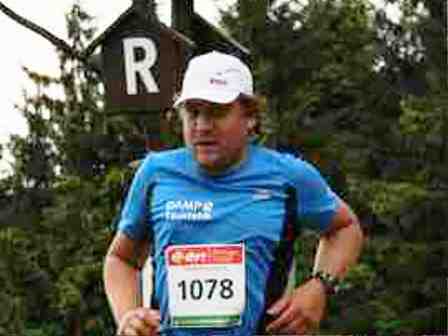 | Zweite Hälfte. Den steilen Anstieg nach km37,5 nehme ich wie immer im strammen Gehschritt. Nun lege ich mir gedanklich den Weg bis zum Grenzadler zurecht. Von der Kilometeranzahl eine Runde, die ich öfter des Abends gelaufen bin. Im Nachhinein möchte ich dieses Stück als die „Kaugummikilometer“ bezeichnen. Sie waren zwar nicht anstrengender als alles andere zuvor, jedoch zogen sie sich ewig hin. Etwas nach dem 40-km-Schild wird mir bewusst, dass ich nun einen Marathon absolviert habe. Nun beginnt das Neuland. Ein kleines Glücksgefühl kommt auf. Ich liege zwar fast um eine dreiviertel Stunde hinter meiner Marathonzeit von 2009, jedoch geht es mir im Vergleich zu damals blendend und der Marathon damals führte durchs flache Hamburg. Somit bin ich zufrieden. Kurz falle ich noch mal hin. Bergauf! Na ja nix passiert und weiter. Fast ergreifend wird es, als ich das 50-km-Schild zu sehen bekomme. So etwas habe ich bislang noch nicht bei einem Lauf gesehen. Ähnlich geht es wohl einem Läufer, der sich selbst vor diesem Schild fotografiert. Dann ist der Grenzadler erreicht. An den Gedanken hier mit Zeitnahme auszusteigen, verschwende ich keine Sekunde. Klar schleicht sich jetzt auch körperlich die Anstrengung ein, aber ich habe mir für die letzten Kilometer noch was vorgenommen. Mittlerweile sieht es laut meiner Hochrechnung nach einer 9-Std-Zeit aus, jedoch gequält habe ich mich noch nicht. Damit der entspannte Zustand noch anhält, greife ich bei der gereichten Brühe kräftig zu. Dieses Salz – Retter in der Not! - Nun der Abschnitt bis zur höchsten Stelle des Laufes. Gar nicht mal so weit, und meine Miene hellt sich auf. Aber weiter ruhig. Jetzt nur nicht hektisch werden. Aber – längst kein Halbmarathon mehr, der noch vor mir liegt. Und den schafft man doch immer, so der alte Spruch. Bei den folgenden Anstiegen zeigt sich, wer sich seine Kraft gut eingeteilt hat und bei wem jetzt die Kräfte nachlassen. Ich kann mich wieder einem Dreiergrüppchen anschließen. Jetzt merke ich, dass ich an Geschwindigkeit zulege und immer weiter in die Anstiege hineinlaufen kann. Meine Glücksgefühle häufen sich, tat ich mich doch in den letzten Wochen aufgrund meiner Fußleckage schon manchmal auf 20 km schwer. Und nun das, nach dieser Strecke, unglaublich. Jedoch will ich immer noch nichts übereilen. Nun kommt der höchste Punkt der Strecke. Schon oft in Laufberichten gesehen, aber relativ unspektakulär auf ebener Strecke. Ab jetzt soll es mit meinem zurecht gelegten Endspurt los gehen. Jedoch zuvor noch mal schnell zum Wasserabschlagen in die Büsche. Aber vorher noch ein kleines Stück laufen. Da das Schild mit dem höchsten Punkt gern als Fotomotiv von Läufern genutzt wird, möchte ich nicht pinkelnd den Hintergrund des Fotos verderben. So, nun zurück auf die Strecke und los. Herrlich lang bergab und es läuft! Der Himmel verdunkelt sich und es fallen erste Tropfen. Aber von jetzt an geht´s immer schneller. Den Verpflegungsstand Schmücke noch schnell mitgenommen und weiter, weiter, weiter. Starker Platzregen setzt ein und ich renne wie von Sinnen. Hab ich mich bislang nicht gequält, so tue ich das jetzt ausgiebig. Ich weiß, ich werde ankommen! Kurz gerät sogar eine Marke unter acht Stunden in mein Blickfeld, aber dafür wird es dann doch noch zu weit sein. Andere Begleiter denken sicher auch an diese Marke, denn um mich rum rennen plötzlich alle wie wild. Ein Anstieg kommt noch, in den ich ziemlich weit hinein renne, aber die letzten Meter doch noch gehe. Es bleiben ja immer noch ein paar Kilometer zu laufen. Die letzte Verpflegungsstation überrenne ich aber. Jetzt wird´s haarig! Die letzten Kilometer nehmen einfach kein Ende! War mein Spurt zu früh? Grade als ich auf einem ebenen Stück das Gehen anfangen will, ermuntert mich ein Läufer im Biel-Finisher-Shirt. „Du hast uns vorhin so motiviert, jetzt komm. Da geht noch was!“ Was meint er mit motiviert, denke ich noch und setze mich wieder in Bewegung. Dieser Tritt in den Allerwertesten kam genau zum richtigen Zeitpunkt. Also noch mal Tempo bis zum km72–Schild. Was für ein Gefühl. 72 km ! Aber auch die letzten 700 Meter können noch verdammt lang sein. Irgendwie noch mal gepumpt und dann ins schönste Ziel der Welt! Geschafft!!!! Aber kein Jubelschrei, kein Hochgefühl. All dies hatte ich schon auf den letzten 12 km gehabt. Es Bleibt nur ein unglaubliches Staunen, wie gut ich alles überstanden habe. Eine große schöne Verwunderung. Nach 4 Bechern Getränke und ein wenig Dehnen, treffe ich den Kollegen wieder, der mich vorhin so gelungen antrieb. Er erzählt mir, dass ich einige Läufer auf dem letzten Stück hinter mir herzog. Jetzt konnte ich mir auch seinen Spruch von vorhin erklären. Die nächsten zweieinhalb Stunden verbringe ich recht abenteuerlich, leicht hinkend auf der Suche nach Christiane und Micha. Sie wollten ab 14:00 Uhr am Ziel sein, doch ist niemand zu sehen. Immer wieder laufe ich, oder vielmehr ich versuche, auf und ab zu laufen, um sie zu entdecken. Vergebens. Langsam mache ich mir Sorgen, zumal ich keine Telefonnummer (hier wieder der Bezug zum Start) habe. Als ich irgendwann einen Sitzplatz finde, spricht mich ein Läufer aus Österreich an. Er sieht erstaunt auf meine Urkunde und staunt, dass ich ihm zum Ziel hin noch 10 Minuten abgenommen habe, wo er doch vorher die ganze Zeit in meiner Nähe lief. Zu meiner Schande muss ich ihm gestehen, dass ich ihn gar nicht bemerkt hatte. Netterweise stellt er mir sein Telefon zur Verfügung und so kann ich über den Umweg über Christianes Mutter die beiden doch noch erreichen. Dies dauerte aber eine Stunde. Ich unterhalte mich noch eine Weile mit dem unbekannten Läufer (leider weiß ich den Namen nicht mehr, aber noch einmal vielen vielen Dank für das Telefon!). Dann muss ich mich aber verabschieden, um mich an einen besser einsichtigen Platz zu stellen. Nach ewiger Zeit finden meine Begleitung und ich endlich zueinander. Micha hat mich als erste