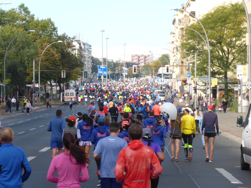 Ich habe mich zum Frühstückslauf mehrfach verabredet, finde jedoch keinen davon. Das ist bei 11.000 Frühstücksläufern auch sehr schwer. Also laufe ich die 7km vom feudalen Schloss Charlottenburg bis ins geschichtsträchtige Olympiastadion alleine. Na ja, nicht ganz alleine. Um mich herum ist alles voller Asiaten, Südamerikaner...