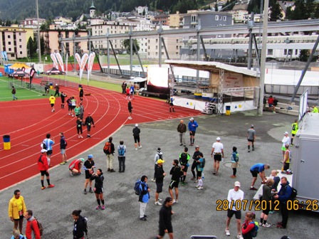 die zielstrebig dem Sportplatz zustreben. Nach dem Anlegen meiner
