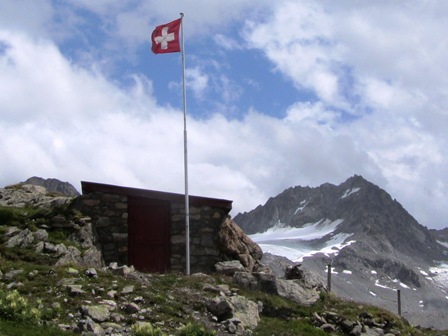 Im starken Wind weht die Flagge auf 2.632m (dünne Luft!) |