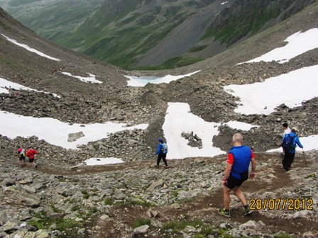 vollen Einsatz. Nach dem Sertigpass geht es unentwegt bergab. Plötzlich
