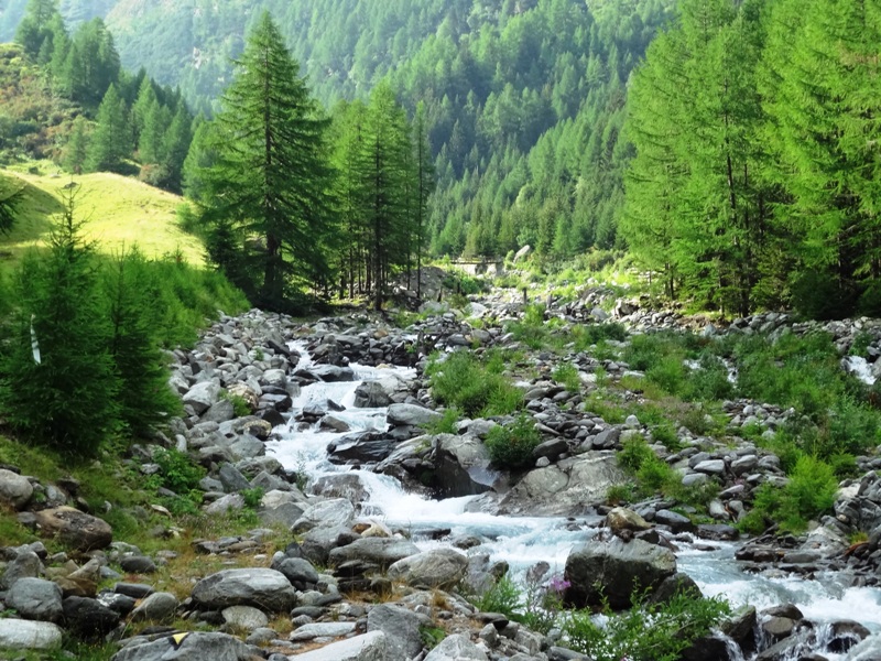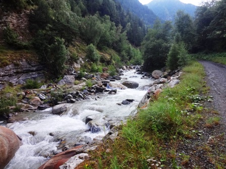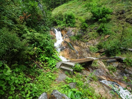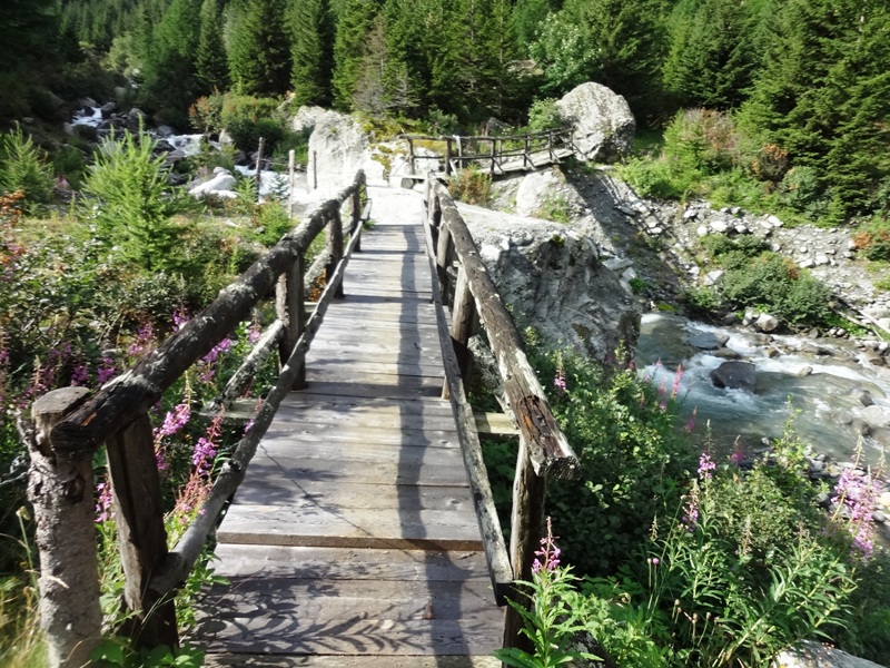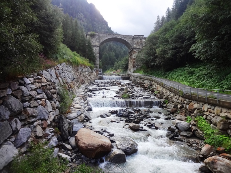 Tal hoch, lange am Gebirgsbach entlang, die alte Napoleon-Brücke, in die
