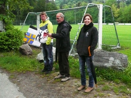 Er holt seine Graubündenfahne für mich raus