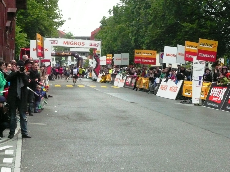 Der Wind ist unerbittlich und auf den letzten 3km enorm. Andi und ich kämpfen dagegen und nehmen auch die letzten Kilometer noch gemeinsam. Jetzt kommen die letzten 300m und wieder viele Zuschauer. Wir werden zwar noch von den ersten 10km Läufern überholt, aber das stecken wir locker weg, haben ja auch 32km mehr in den Beinen.
