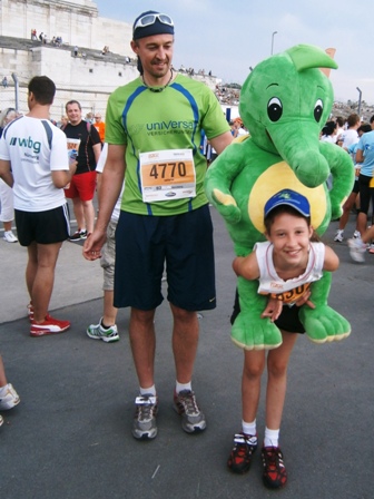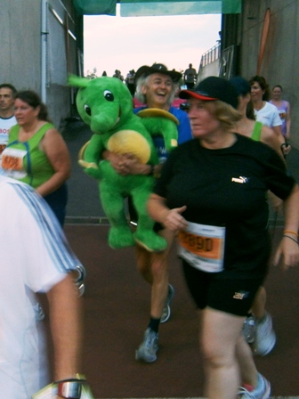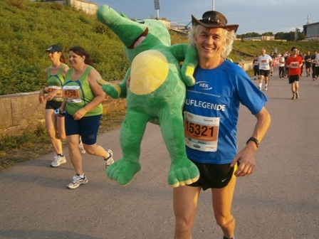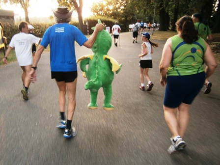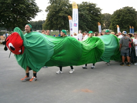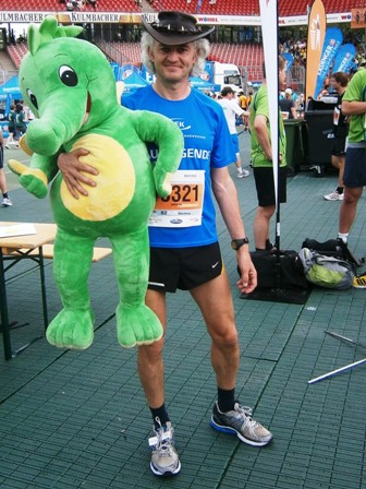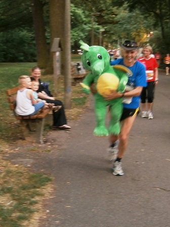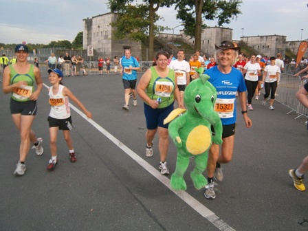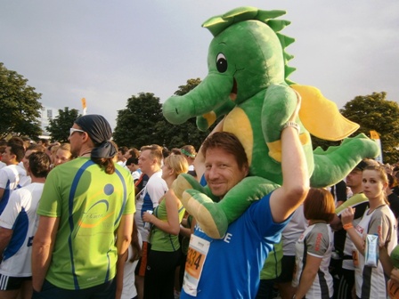 Tabaluga, der kleine Drache (Symbol einer Universa-Kinderversicherung) macht heute das Rennen