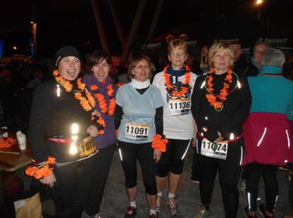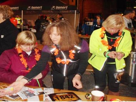 Auch unsere 10 km Läuferinnen Ines, Lydia, Steffi, Dagmar und Eugenia sind eingetroffen. Erst mal schauen welche Give-Aways sich in den Startunterlagen verstecken. Aha, die Hoola-Kette sieht fesch aus.