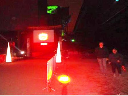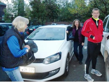 Ankunft am Parkplatz. Noch ist es hell. Wir 4 liefen 5 km und mussten daher früh da sein.