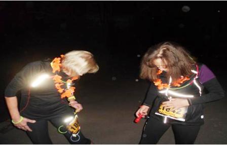 Letzter Check, ob auch alles gut leuchtet. Die beiden können es einfach nicht lassen. Mädchen, halt!