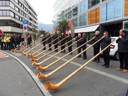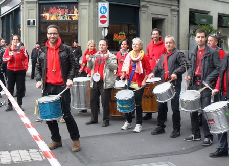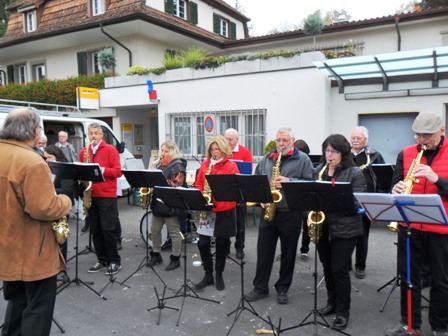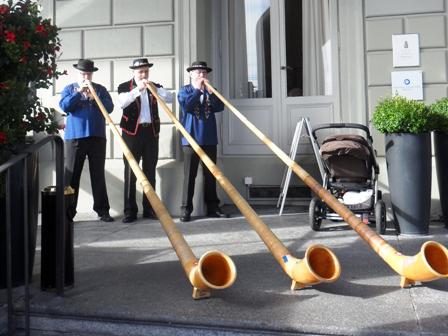 Den Anstieg erleichtert uns die Luzerner Guggenmusik