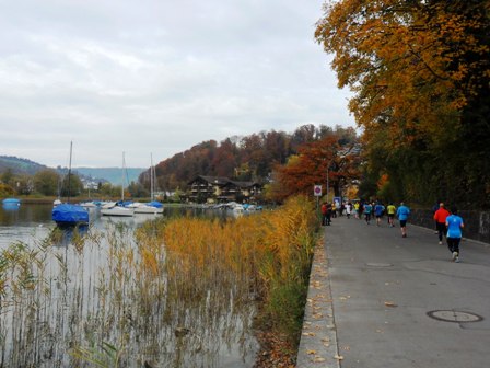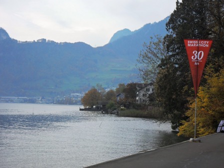 Futtern und Trinken war bestens: Wasser, Iso, Banane, Riegel, Gel... für mich völlig ausreichend. Nur die für Cola-Fanatiker fehlte ab km30 Cola. Urige und herzige Schweizer Sprüche gab's überall, nur keinen Dolmetscher dazu so im Vorbeilaufen ;-)  Meine Highlights waren der Streckenabschnitt über die Brücke und durch die Altstadt, was gerne noch länger dauern dürfte. Landschaftlich war der Uferweg echt schön.