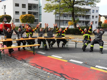 Die Jungs von der Feuerwehr haben riesigen Spaß