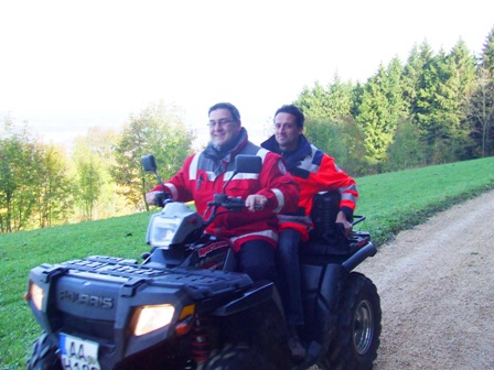 Ups, rasant sausend begegnet uns am Waldrand ein Quad. |