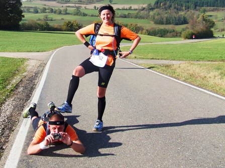 Oben am Berg begegnen wir Susanne, etwa 1km vor uns. |