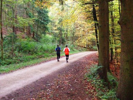 Wir verschwinden in den Wald auf den schmalen Trail-Pfad... |
