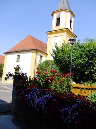 Schöne bunte Blumen an der Dorfkirche, gleich nebenan. |