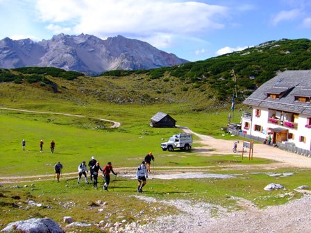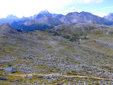 Km11: Erstes Futtern heute am Rifugio Pederü (1.545m) |