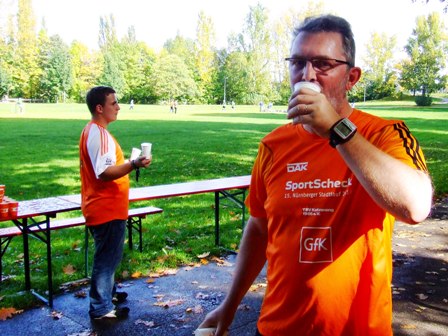Verpflegung bei km3,5: Isogetränk und Wasserbecher |
