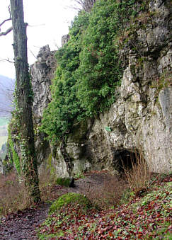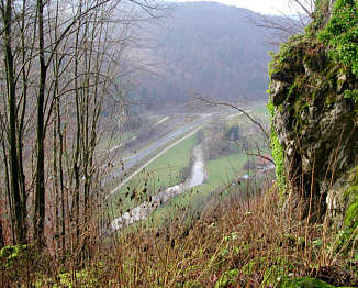 Felsenpartien. Grandioses Wiesenttal auch Schottertal genannt Wir laufen nun noch einige Hundert Meter einen herrlichen Wanderweg oberhalb des linken Wiesentufers entlang. Immer wieder tun sich schöne Ausblicke aufs Wiesenttal auf. Auf diesen Metern muss jedoch auch sehr auf den Weg geachtet werden, da dieser schwierig und schmal und leider oft auch sehr glitschig ist. Es kann daher sein, dass längere Passagen gegangen werden müssen. Riesenburg - Dramatische Riesenversturzhöhle Schließlich biegen wir ab und überqueren die Wiesent auf
