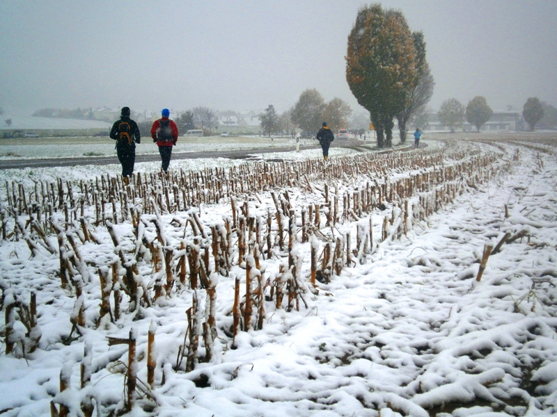 - Der erste Schnee beim 22. Albmarathon (50km) Beim Strecken-Briefing heißt es "geschlossenen Schneedecke" oben ab km11. Temperatursturz, es schneit den ganzen Tag. Das gab's am Albmarathon noch nicht. Aber es gibt ja kein schlechtes Wetter, höchstens unpassend gewählte Kleidung. Also schaumermal, wie es sich im Oktober mit Schnee läuft? |