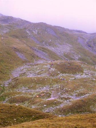 zu regnen. Entgegen kommen Wanderer, gut ausgerüstet, was die