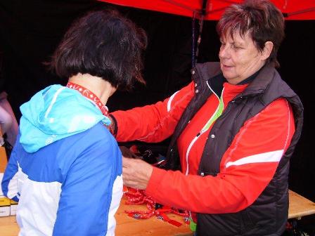 und den Läufern halfen sie anzuziehen, was wegen klammen Fingern
