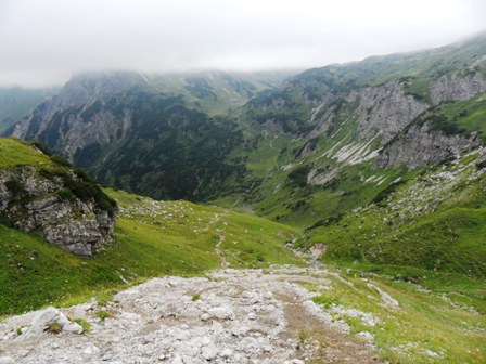 Die Strecke verläuft zunächst in umgekehrter Form wie gestern. Bei Tageslicht und ohne Regen ist der Weg zur Bärgunttalhütte viel freundlicher