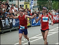 Kurzfristig haben sich beide entschlossen 3:15 zu laufen. Bei der ersten Getränkestation