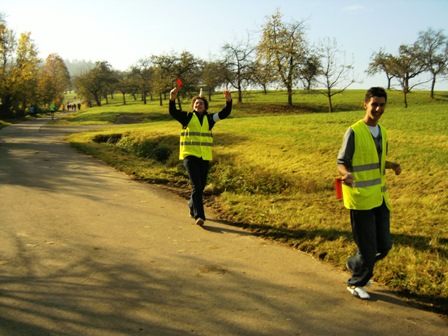 Nach km25 ist die Zahl der Läufer deutlich weniger geworden. Ich drehe